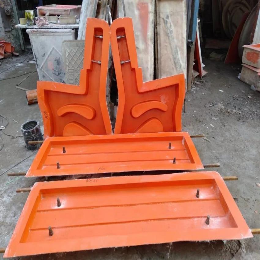 Red, color-coated FRP garden bench mould. Rectangular shape, 5 feet in size. Requires a minimum order of 3 sets. Made in India.
