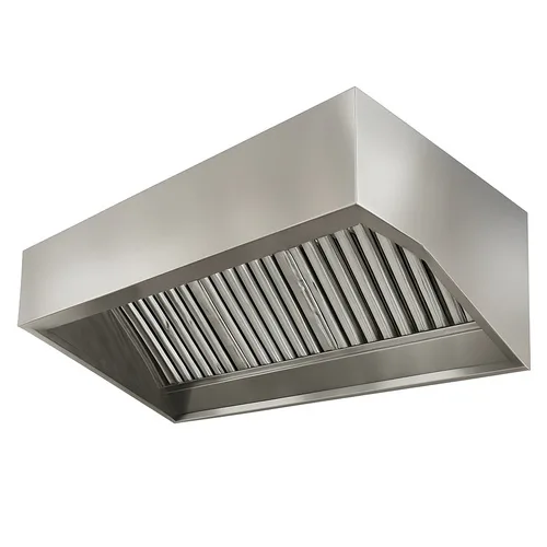 Rectangular industrial kitchen hood for commercial mixers. Designed for industrial applications, this new equipment is made in India. Features a durable construction for heavy-duty use.