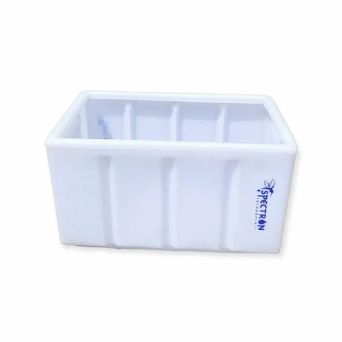 Durable plastic crate with rectangular shape. Available in blue, suitable for industrial use. Capacity ranges from 20 to 400 liters. Designed for storing edible materials.