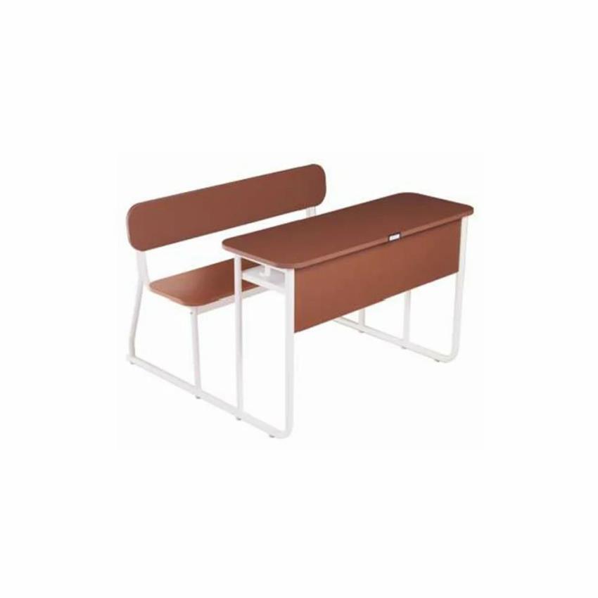 Rectangle wooden study table, model GO TB/A-002. Features MS frame, seating for 2. Suitable for school use in white and brown colors. Made in India.