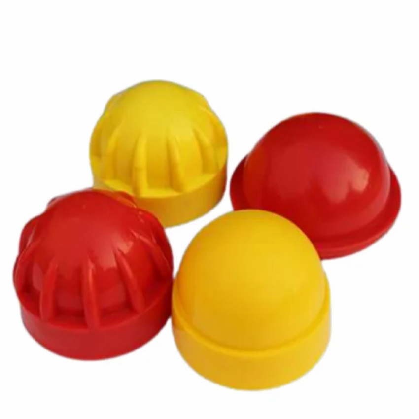 Round, pull-push caps with 10 mm neck size. Available in red and yellow. Designed for gym application. Non-customized, new condition, packed in packets.
