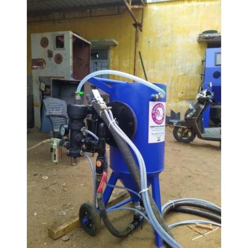 Portable 3 Hp sand blasting machine with 100 Kg capacity, 12 bar max pressure, and semi-automatic operation. Ideal for surface cleaning, paint removal, and rust removal.