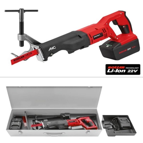 REMS Stainless Steel Akku Fox 22 V VE Machine for industrial applications. Features 21.6V/500W battery motor, 0-1900 rpm speed. Weighs 3.4kg.