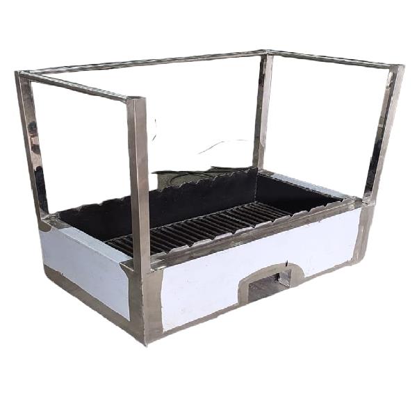 Stainless steel barbecue range for restaurant use. Silver color, single shelf. Made in India. Designed for professional charcoal grilling.