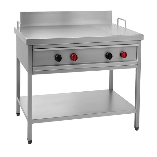 Semi-automatic stainless steel chapati plate for restaurants. Features 6 LPG burners, manual ignition, and a chrome surface finish. Size: 21x21x34 Inch.
