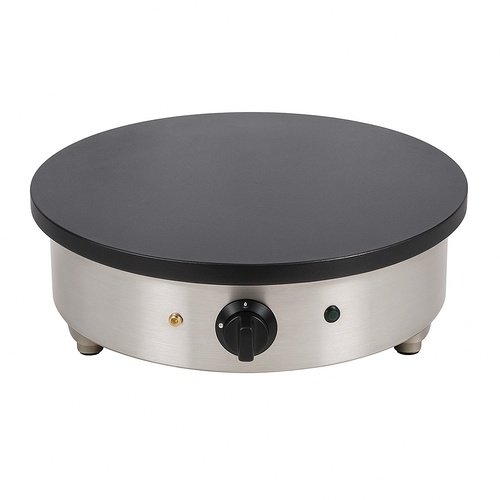 Single-phase electric crepe machine for restaurant use. Features a Stainless Steel body, operates on 230V, 50Hz, with dimensions of 400x145 mm. Durable and efficient for commercial kitchens.