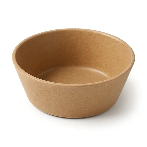 Eco-friendly round rice husk curry bowl, 100ml capacity. 4-inch top diameter and 3-inch bottom diameter. Ideal for serving curries and small portions.