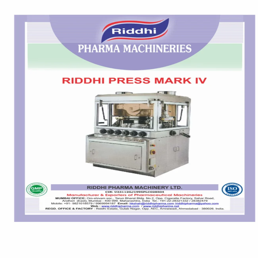 Automatic mechanical tablet press machine, model RDIVD-45, with 37-71 stations. Built with MS, casting, and SS 316. Capacity: 25-40 thousand tablets/hour. Operates on 440V.
