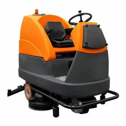 This ride on scrubber features a 17-inch brush diameter, 165 rpm brush speed, and a 75 L water tank. Constructed from stainless steel, it operates on battery power for up to 5 hours.