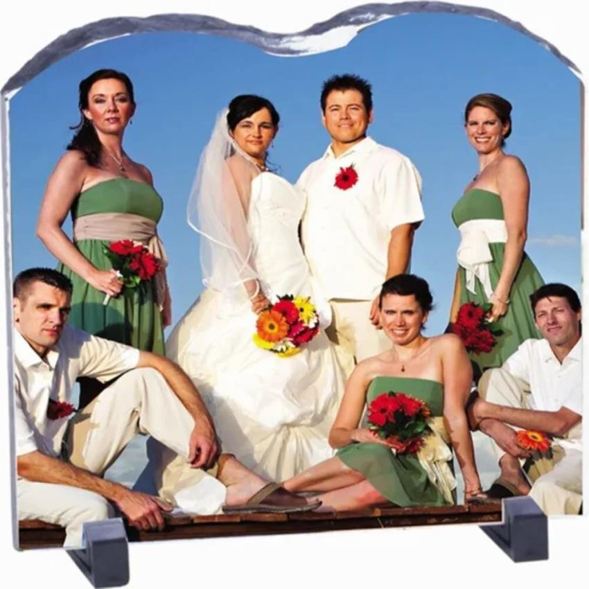 Sublimation photo printed stone decoration. Features blue color and photo print pattern. Minimum order quantity: 20 pieces. Made in India.