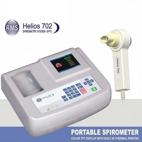 RMS Helios 702 portable diagnostic spirometer for hospitals. Automatic, desktop type, with FVC testing, printer, USB, and patient database.