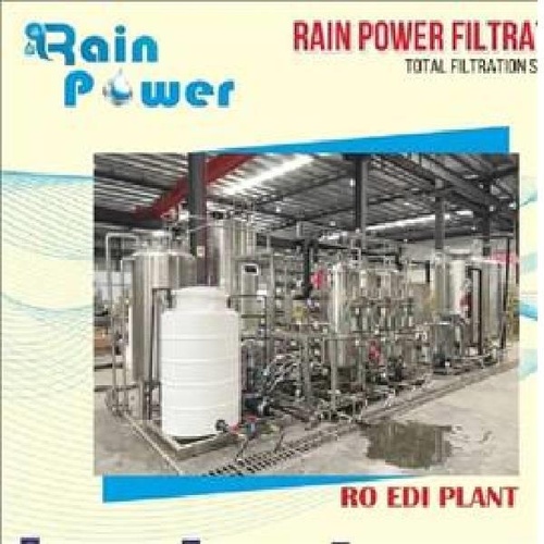 Automatic RO EDI plant for river water. Features 1-ton chiller, 2.0 HP motor, 70-75% recovery, 240V power, and 10-year warranty.