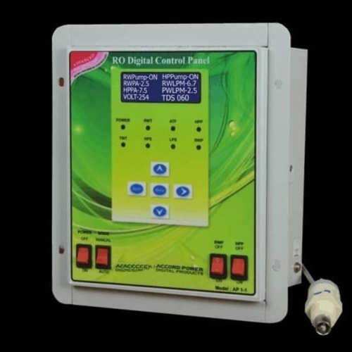 RO Water Plant Control Panel with inbuilt level controller. Designed for RO plant applications. Made in India. Ensures efficient water treatment system operation.