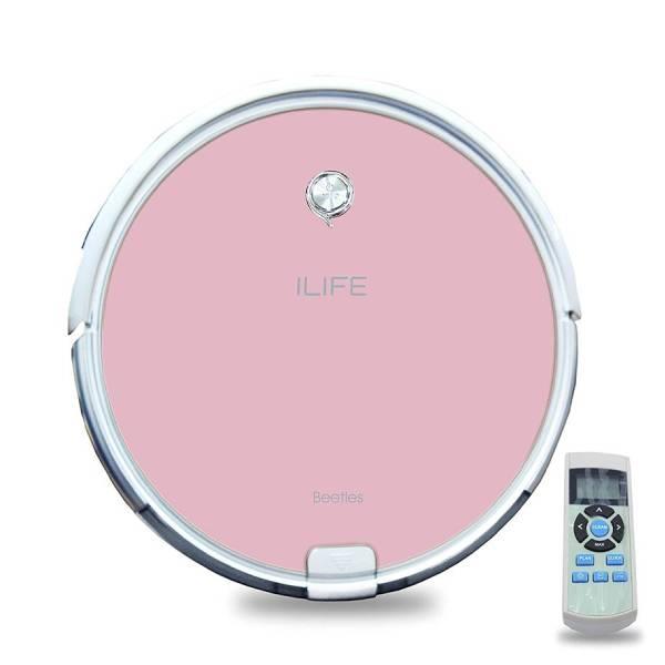 This pink robotic vacuum cleaner operates on 110V with 22W power. It measures 31.5 x 31.5 x 7.2 cm and functions as a wet & dry cleaner.