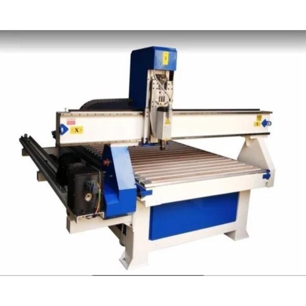 4-axis rotary CNC wood engraving machine. Features 1300x2500mm X-Y area, 300mm Z-axis, 3 kW spindle. Capable of engraving PVC, plywood, wood, acrylic, and ACP.