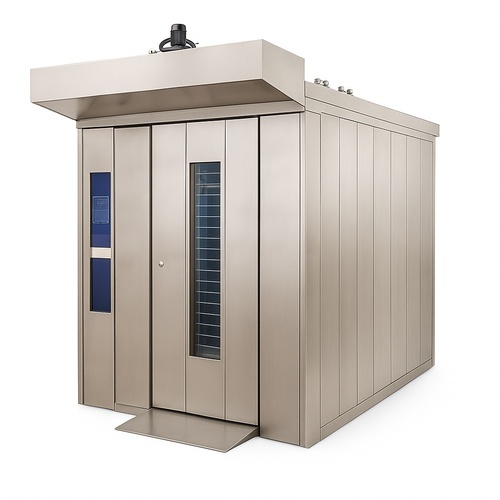 Rotary rack oven for commercial baking. Minimum order quantity is one piece. This equipment is designed for efficient baking of a wide variety of products.