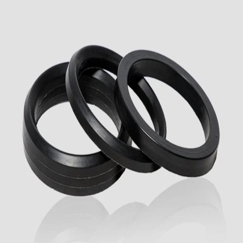 Round black PU rubber chevron set, available in 10-690 mm OD. Supplied in packets, with a minimum order quantity of 10 pieces. Durable and versatile for various industrial uses.