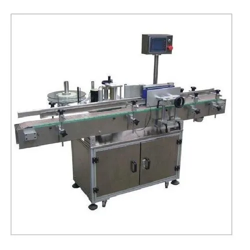 Automatic sticker labeling machine designed for round bottles. Provides efficient and precise application of labels, suitable for various production needs. Features robust construction and reliable operation.