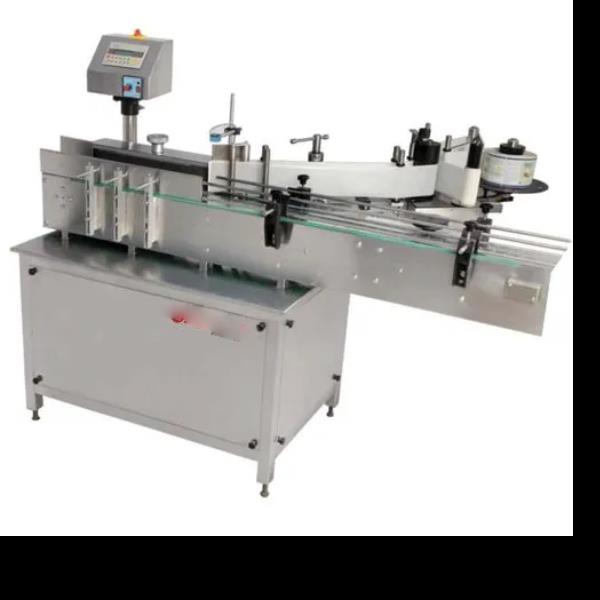 Automatic industrial round bottle labelling machine. Designed for new products. Manufactured in India.