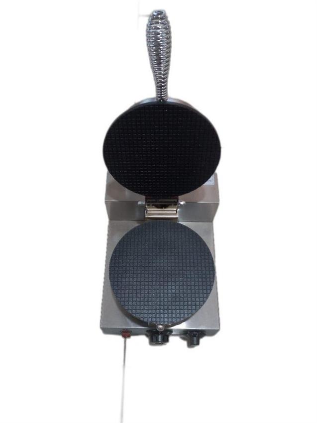 This round waffle cone maker features a durable stainless steel body and operates on 220V. ISI certified and made in India, it's designed for standard use.