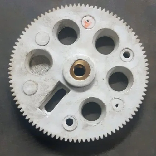 Round mild steel gear for tufting machines. Features a 10-inch diameter, 25mm thickness, and weighs 215g. Minimum order quantity of 50 units.