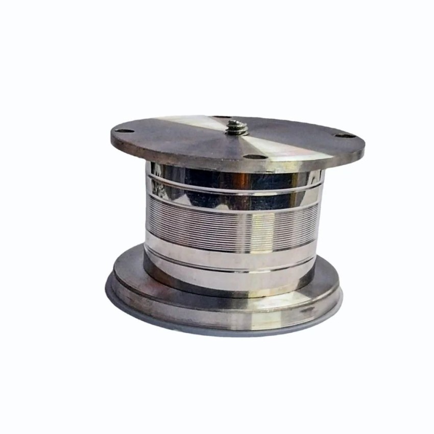 Set of two round, glossy stainless steel sofa legs. Made in India, providing robust support and a modern chrome finish.