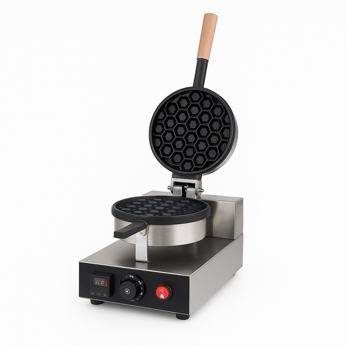 Round waffle baker machine, stainless steel body, 230v 50hz. Standard design for bakery applications. Minimum order quantity of 1, supplied in box packing.