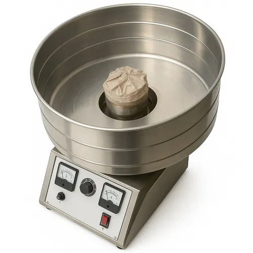 Semi-automatic cotton candy machine with stainless steel bowl. Features 0.25 HP motor, polished finish. Weighs 7-8 Kg. MOO 10 units. Grade 202/304 steel.