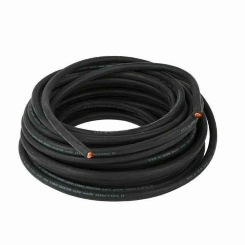 Black, insulated copper welding cable with rubber insulation. Heat resistant and suitable for industrial use. 5m length. Made in India.