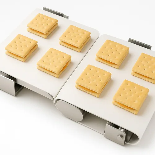 Rubber conveyor belt for food applications. Available in white and yellow. Carcass construction includes EP/NN/PP. Rated 200 to 3150 kN/m. Offers various cover grades and edge types.