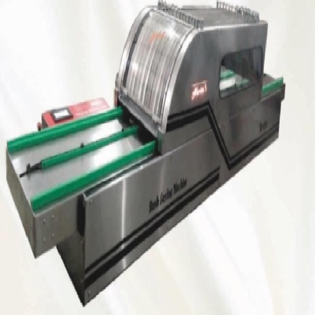 Rusk laying machine model NHM-L-10. Requires 4 labor, has 2 HP power, and 10 tray minimum capacity. Dimensions: 3*17*5 ft. Tray size customizable.