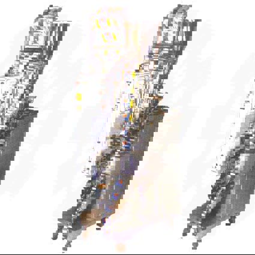 Pouch fabrication machine for various packaging needs. Minimum order quantity of 1 unit. Designed for efficient production in industrial settings.