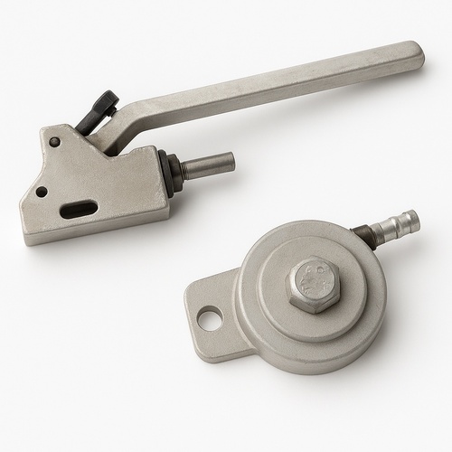 This Dead Man Handle acts as a safety switch, requiring constant operator engagement to maintain equipment operation. Releases for immediate shutdown.