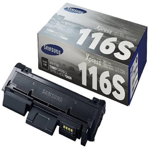 Genuine Samsung 116s toner cartridge. Delivers high-quality black prints. Designed for optimal performance and reliability in compatible Samsung printers.
