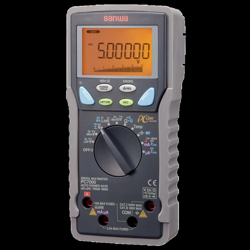 SANWA PC7000 portable multimeter for low-voltage circuits. 6-digit dual display, True RMS, MIN/MAX/AVG hold. CAT.II/CAT.III safety rated. 1 Year warranty.