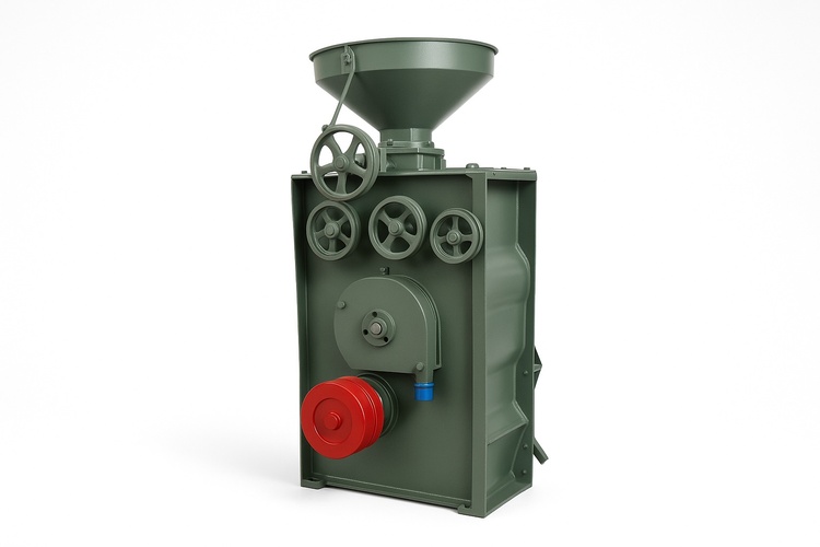 Semi-automatic SB Series small rice mill for industrial use. Powered by 2 HP motor, 220 V, three-phase, 50 Hz. Constructed from MS with a color-coated finish. Capacity: 400 Kg/h.