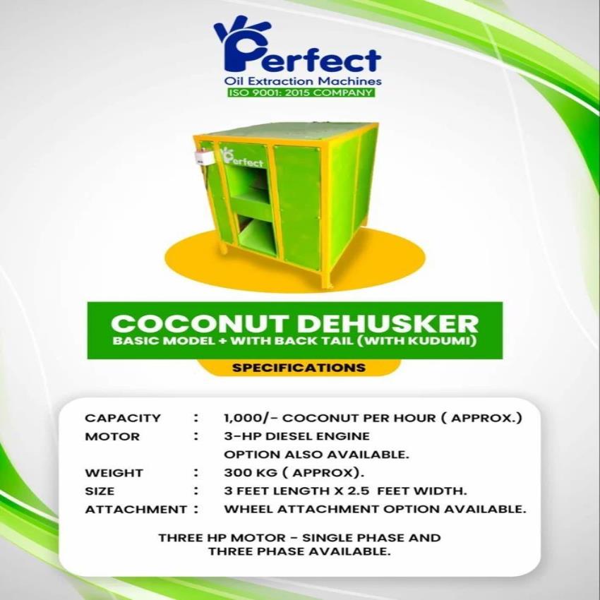 Mild steel, semi-automatic dehusking machine with 800 nuts/hour capacity. Commercial grade, single phase, producing 400 coconuts/hr. Ideal for industrial use.
