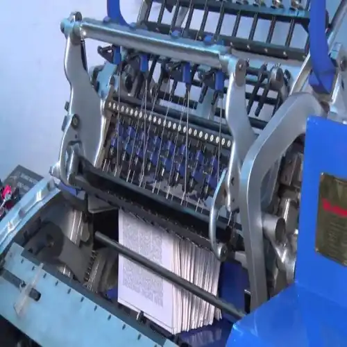 Semi-automatic thread book sewing equipment producing 500 books per hour. Made in India, this machine offers reliable performance for bookbinding needs.