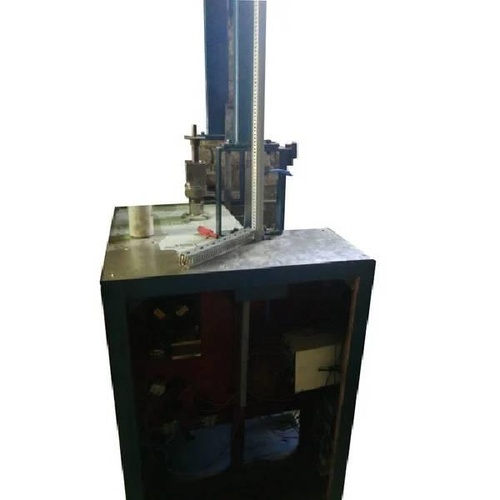 Semi-automatic air filling and sealing machine. Auger filling type with multi-track sealing. Handles 500-gram pouches. Industrial application.