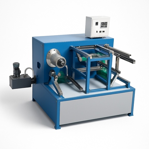 Semi-automatic winder rewinding machine for batch coding. Features 3 HP motor, 380 V, and rewinds up to 500 mm diameter. Made of MS material.