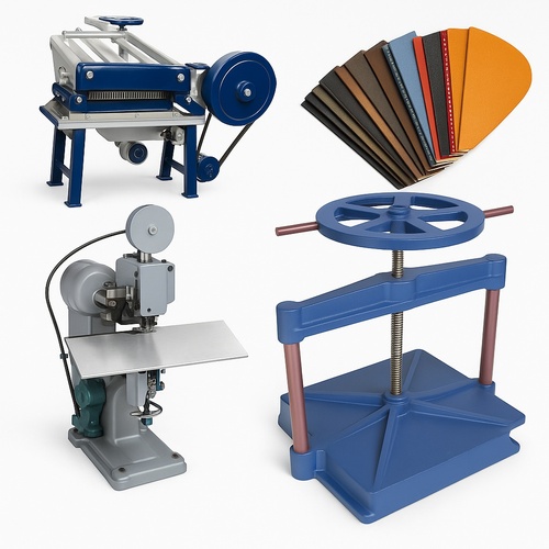 Semi-automatic mild steel notebook making machine with 32-inch notebook size. Produces 1000 pieces per hour. Operates on three-phase power.