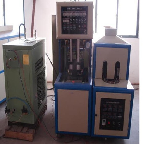 Semi-automatic blow moulding machine for plastic bottle production. Ensures consistent and reliable blow molding of various container types.