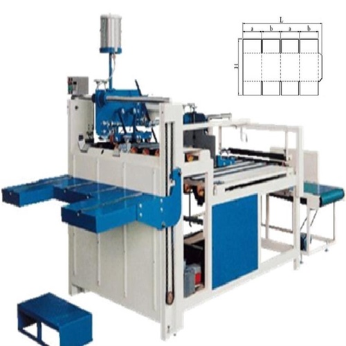 Semi-automatic carton pasting machine with 3.5 kW power. Achieves 1800 units per hour capacity. Operates on 3 phase, 440V, 50Hz AC power. Weight: 1500 Kg.