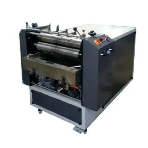 Semi-automatic gluing equipment utilizing hot/cold glue. Processes 1500/hour, consumes 0.5 Unit/hour. Operates on 220/440V, 1 or 3 phase.