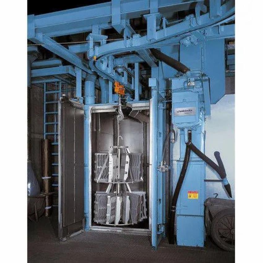 This semi-automatic shot blasting machine features a hanger loop design, operating at 220V and 50-60Hz. Constructed from mild steel, it offers a die locking force of 10-20 tons with a max casting area of 50-100 sq cm.
