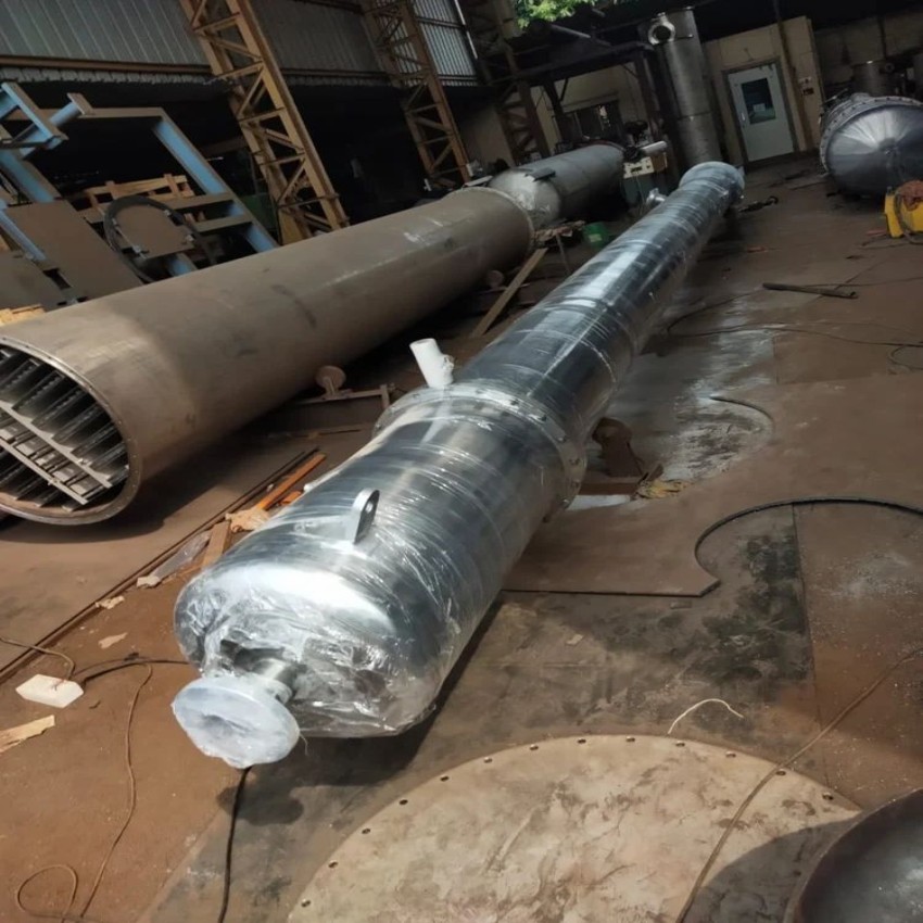 Semi-automatic, high-energy stainless steel scrubber with polished surface. Designed for the gas industry. Silver color, made in India. Efficient gas purification.