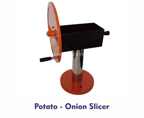 Semi-automatic mild steel onion slicer machine with 1 HP motor. Offers a daily capacity of 150 kg for efficient processing.