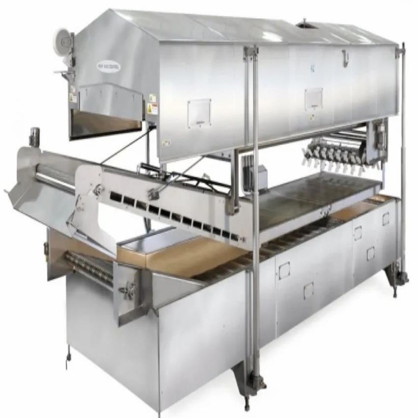 Semi-automatic continuous fryer designed for potato chips. Manufactured in India with dimensions and weight adaptable to requirement.