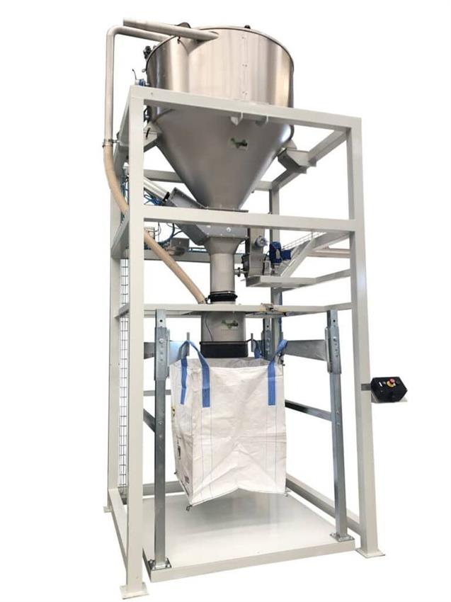 Semi-automatic sand bagging system for industrial use, with a capacity of 500 bags per hour. Made in India.