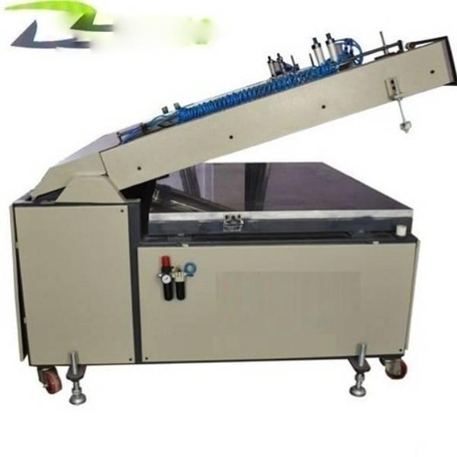 New grey metal semi-automatic screen printing device, model ZDM. Achieves 1200 sheets/hour capacity. Robust construction for industrial printing applications.
